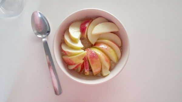 Breakfast at home in Utrecht! Oatmeal with apple and honey. Yum ^^