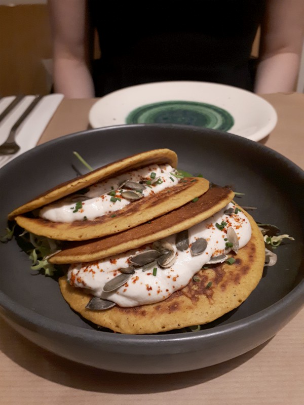 We went for dinner at Le Potager de Charlotte, a vegan restaurant that puts a lot of care into the food. We had chickpea pancakes with cashew cream as a starter, and I had a noodle dish as a main. It was delicious!