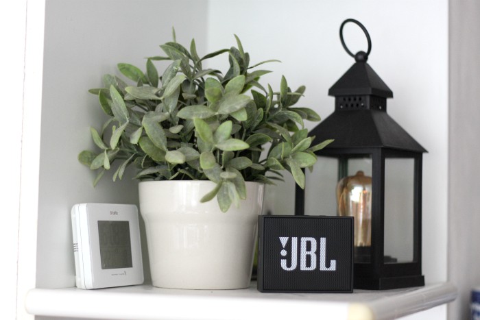 They also provide a nice backdrop for our little speaker, which was placed on this shelf temporarily but ended up always being there. Now it has an actual home, in the place where it’s most often used, that it fits in nicely.