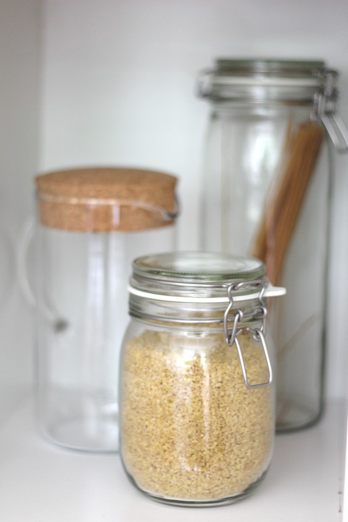 I’m in love with these large jars! This house is the biggest one I’ve lived in to date, and when I moved my things in here everything suddenly seemed so small. The space really called for some large accessories and these jars do the job perfectly. They’re from the same line as the smaller, round jars I use to store my loose leaf teas in, so they tie everything together nicely. I’m also really in love with the look of the cork-top pitcher, which I plan to use to brew coffee in when we have guests over.
