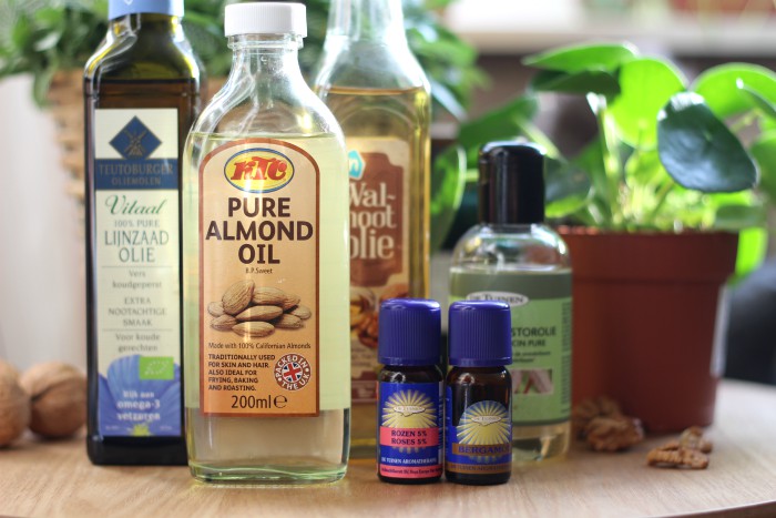 Nut oils are amazing hair conditioners. They contain omega-3 fatty acid, have anti-inflammatory properties and provide lots of moisture for the hair. In this serum I’ve combined the power of walnut and almond oil with the hair growth stimulating and scalp conditioning forces of flaxseed and castor oil. Add a few drops of rose and bergamot essential oil for a lovely flowery scent, and you’re all good to go. Prepare for a luscious, shiny head of hair!