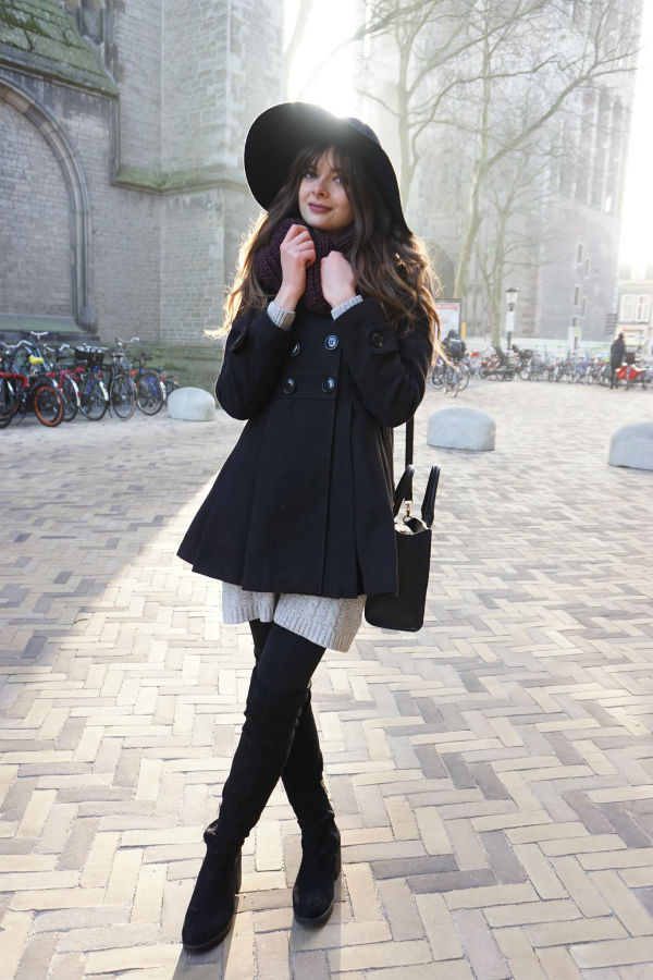 On Wednesday I met up with Catarina, a photographer from Portugal who was visiting Utrecht for a few days and was looking for someone to do a shoot with. I put on my favourite grey sweater dress and headed into the city centre.