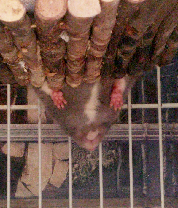 For some reason, rats love to climb up as high as possible and then hang over the edge. This wooden bridge is right at the top of the cage and here you can see Llewelyn enjoying the view. From below. Isn’t this just adorable? Look at that little chin! Those little paws! Awwww <3
