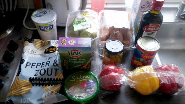 Tuesday is still chores & filming day in my book, so after cleaning the house & running a load of laundry I headed out to the grocery store. I got soy yogurt, salt & pepper crisps, pears, dried lentils, baba ganoush, sweet potatoes, pickled jalapenos, bell peppers, canned tomatoes, olive oil and soy milk.