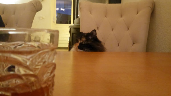 I enjoy the pictures of your and Robbert’s pets so much! :D I have guinea pigs myself and cats at my mom’s house and I can’t get over how cute all of them are (guinea pigs look like they smile all the time <3), haha! One of our cats likes to sit on chairs and look at the table as well. He just likes to be where his humans are.