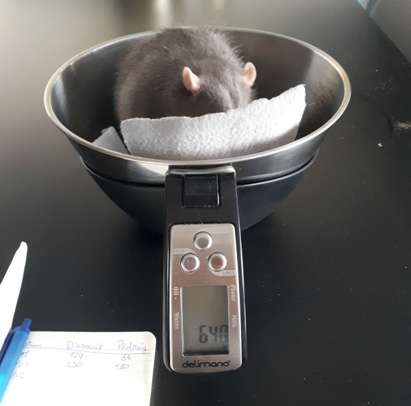 Love the rats, I hope Penpingion will be well soon! The photo with the scale made me laugh – looks like that rat is trying to remain anonymous because he is embarrassed about the weight…