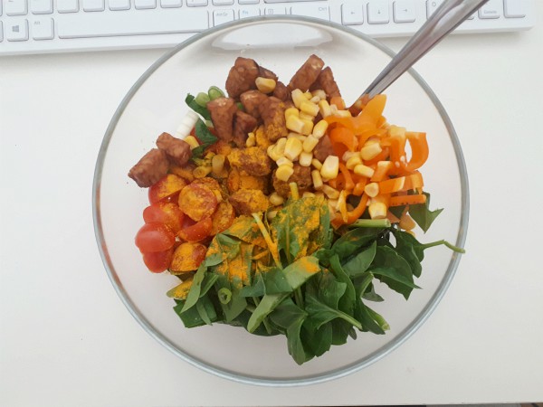 Still sticking to my new year’s resolution: buddha bowl for lunch. I prepared a whole loaf of tempeh on Monday, along with a pot of quinoa and had those as the base of my meals all week.