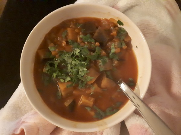 Yummy spicy eggplant soup for dinner. There’ll be a recipe up for this later this week!
