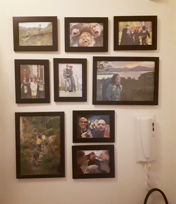 I finally picked out some photos for the gallery wall! I had them printed, and this is what it looks like. I’m absolutely in love with this area now. Sometimes I just stand here and look at all the photos that hold all these great memories. Love it!