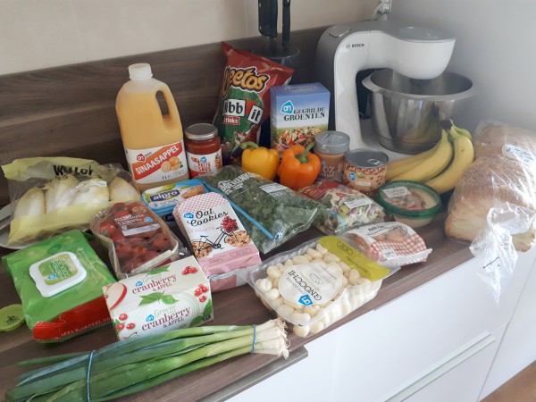 As promised last week: grocery hauls are back! This week I got chicory, disinfecting wipes, cherry tomatoes, cranberry flavour green tea, gnocci, cookies, soy butter, orange juice, pasta sauce, kale, vegan pâte, chopped veggies, peppers, crisps, frozen grilled vegetables, peanut butter, lentils, hummus, bananas and bread.