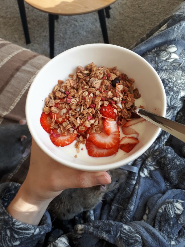 Breakfast with the boys! I’ve made the mistake of feeding them little bits of my breakfast before, and now they’ll hang out under my bowl every morning begging for a bite. Which they always get, because look at their little faces. This is one of my favourite moments of the day.