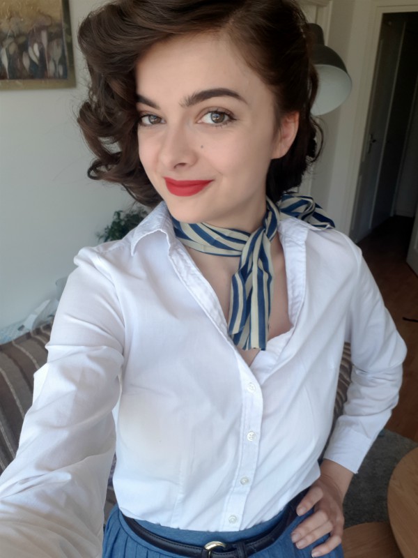 that photo of yours with your red headphones and 40s look – really chic somehow, I love how the red of the headphones fits your lipstick ;)