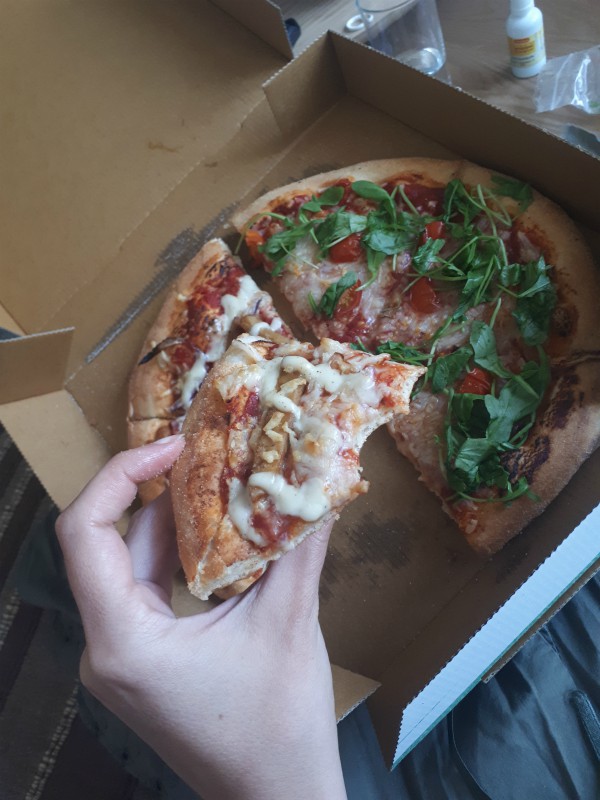 When I got home in the evening, Robbert and I ordered the new vegan pizzas New York Pizza now offers in the Netherlands. They were good, but not amazing, I have to say. The shoarma one is my favourite, but I think I prefer the California Veggie with no cheese I usually order.