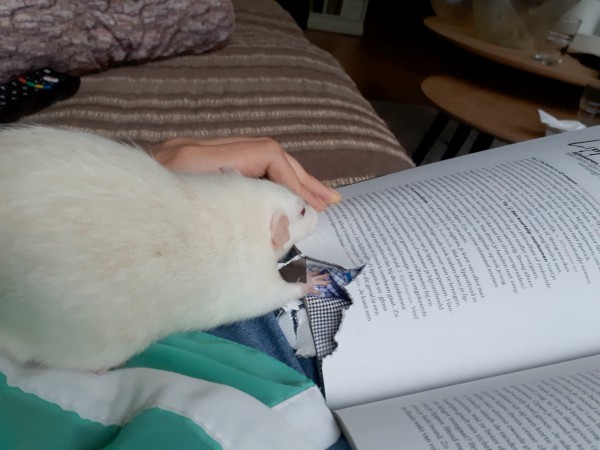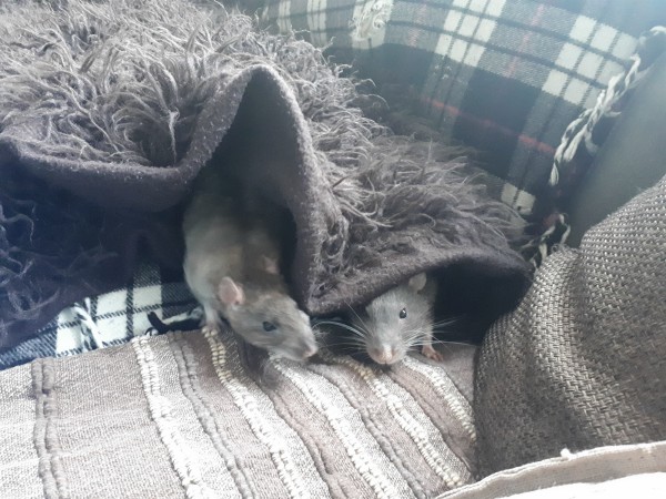 The boys! Little grandpa Llewelyn is massively breaking my rattie age record at the moment, as he’s going on 2.5 years. He needs a lot of care now, but is still a happy chap so I don’t mind providing whatever he needs and spoiling him a bit. At the moment he can’t really use his legs any more, but crawling around under the blanket is still one of his favourite things to do, bless him.