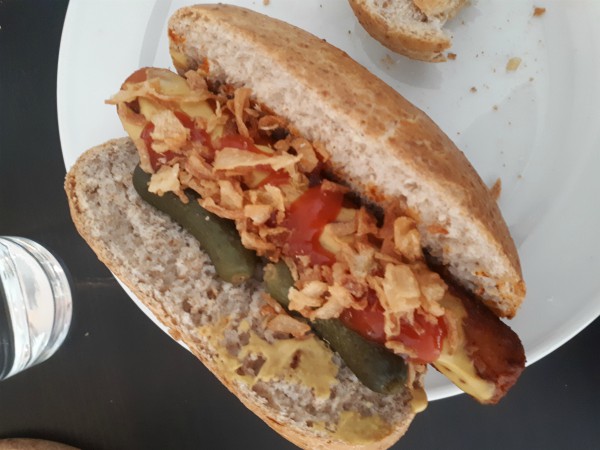 She stayed for lunch and I made us carrotdogs, which are hotdogs made of marinated carrot. I’ve seen recipes for these floating around the internet, but they sell readymade ones in my supermarket now by the brand Knakwortel which are absolutely delicious. Definitely worth a try if you can get your hands on some!