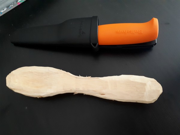 I bought a more suitable knife than the foldable one I use for scouting, and this is how far I got this weekend. Not too bad, but it’s definitely far from done. I have every intention of finishing it soon! Can you believe this was a branch on the ground just two days ago? I feel like we’re so disconnected from nature nowadays, it’s really good to have these little wake-up calls every now and then.