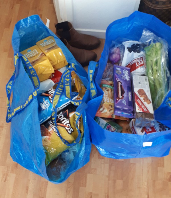On Friday my friend came over to help me get the groceries for my camping trip this weekend. I got food for nine people, hence the giant bags, but it looks like I only bought loads of snacks, haha. I promise there are veggies and fruit underneath ;)