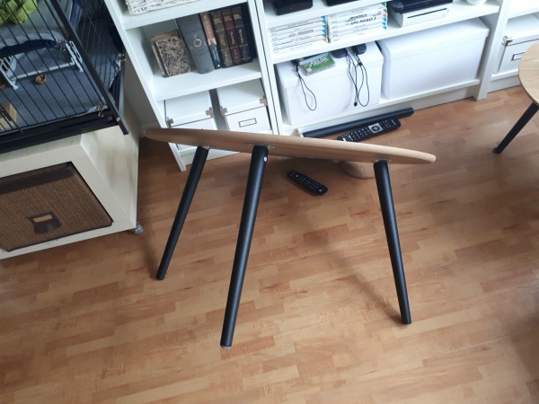 My friend and I came to our house and as we were getting ready to assemble the new coffee table, the old one’s leg broke off. Again. Robbert had re-screwed and glued that thing (and one other leg) countless times already so this really was the last straw. We got rid of it for safety reasons as well as out of frustration. You just can’t place pots of hot tea or laptops on something that could crash down any moment… This coffee table was beautiful, but the quality was unacceptably bad.