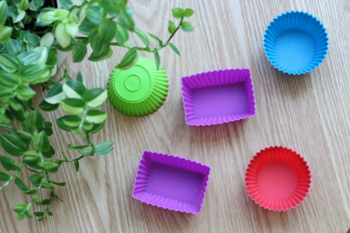 I’ve had a bunch of sillicone cupcake liners for a few years now, both the traditional round ones and a set of rectangular ones. I even have a few that are shaped like plant pots. They work great for baking muffins and cupcakes, but also little pies and pastries. You can also use them as dividers in lunch boxes. Just throw them in the dishwasher when you’re done and they’re ready to be used again!