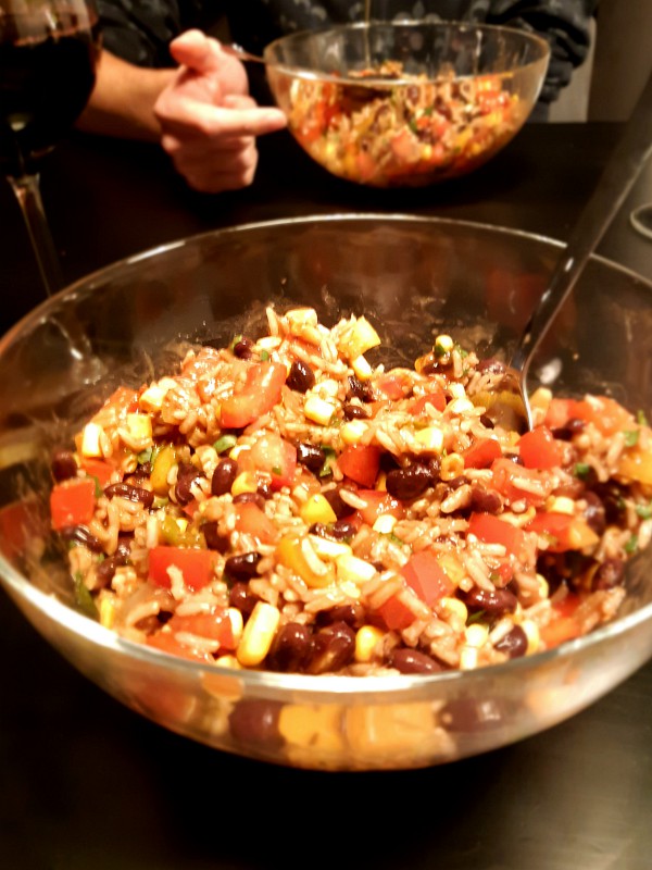Robbert and I had burrito bowls for dinner that night. This is so simple to make, but so delicious! Just cook some rice, dice onion, garlic, bell pepper and tomato, rinse a can of black beans and a can of sweet corn. Saute the onion, garlic and peppers, add mexican spices, add the beans and corn after a few minutes, then turn down the heat and combine all ingredients together (add the rest raw). Serve with a splash of lemon juice and some cilantro. I could easily eat this several times a week, yum!