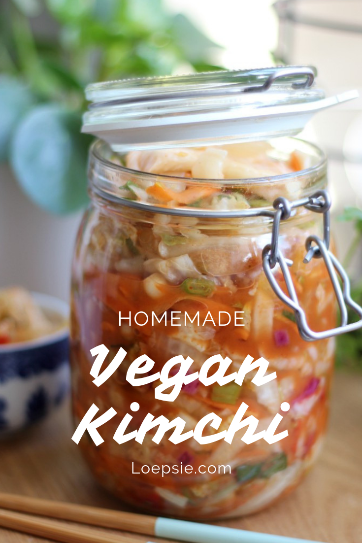 Oh, how I love a good spicy, crunchy kimchi. Ever since I first tasted this traditional Korean fermented cabbage a year ago, I’ve been head over heels in love. However, nearly all kimchi I’ve been able to find in store or in restaurants contains fish sauce and/or sea food and therefore sadly isn’t vegetarian and vegan friendly. The only kimchi I’ve been able to find around me at all is sold in a specialty Japanese & Korean food market and pretty pricy, as such. Plenty of reasons to try making my own!