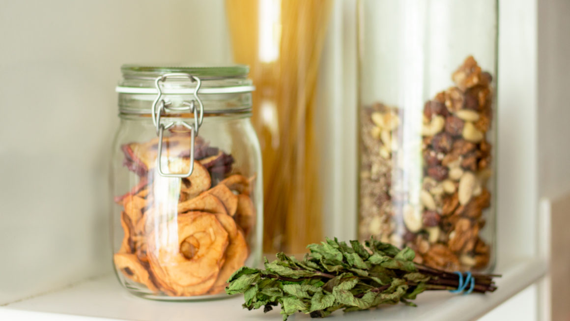 The food we keep in our pantry right now consists of all the essentials I need to make healthy, complete vegan meals on a daily basis. I focus on food that doesn’t spoil too quickly and is nutritionally dense, and things that I can easily make into stews, soups and casseroles. Since we only have a tiny little freezer compartment in our fridge, that isn’t something we can rely on to store a lot of food. Dried and canned is the way to go for us.